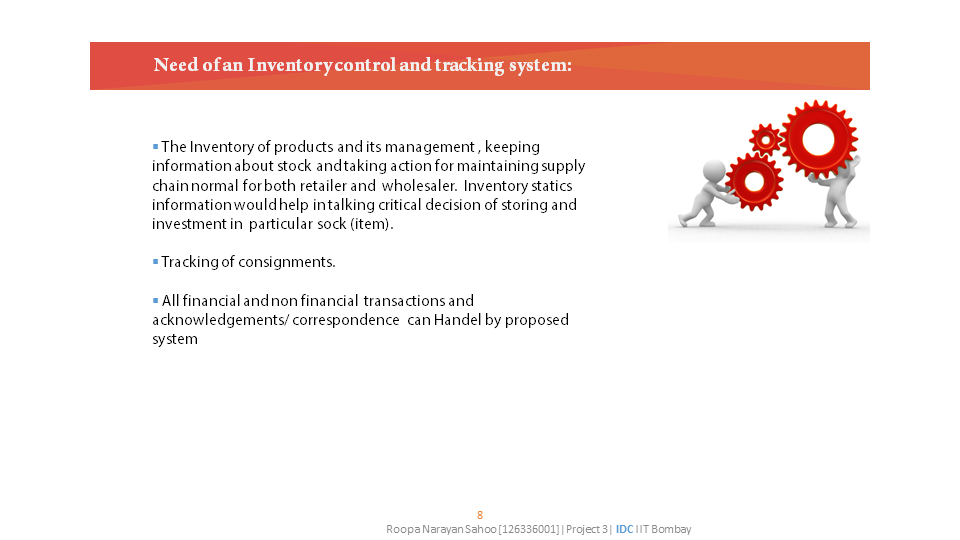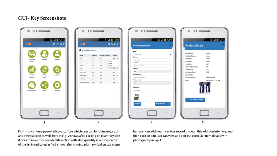 price tag, specifications, physical location with visuals of real products and also at the same time keep track on movements of consignments, payments, transactions. It generates different business reports to help business men in making various business decisions effectively.