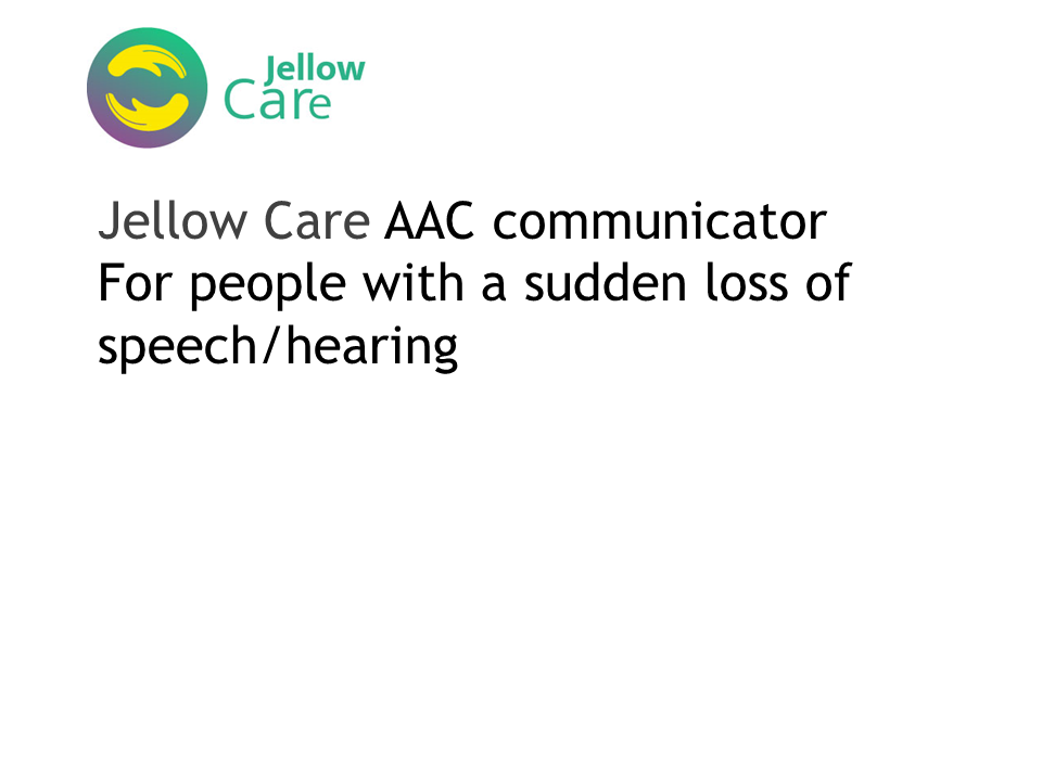 Jellow Care is an Alternative and Augmentative Communication (AAC) app for people with speech and communication difficulties. It uses pictures, text and sound to enable speech.
