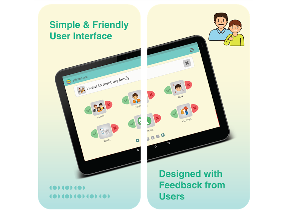 This app provides an immediate assistance in communication for people with aphasia and those suffering from a stroke. Jellow Care allows them to express their thoughts, needs and wants, thus helps them to feel socially included and empowers them.